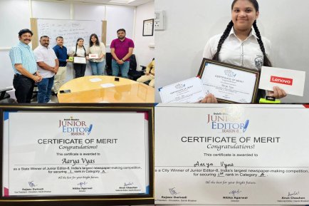 We are delighted to share that our talented student Aarya Vyas has secured 1st Prize in Junior Editor Season 8, organized by Dainik Bhaskar, at both C...